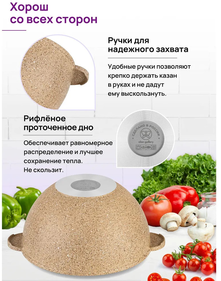 Elan Gallery Казан с крышкой «Медовый гранит»