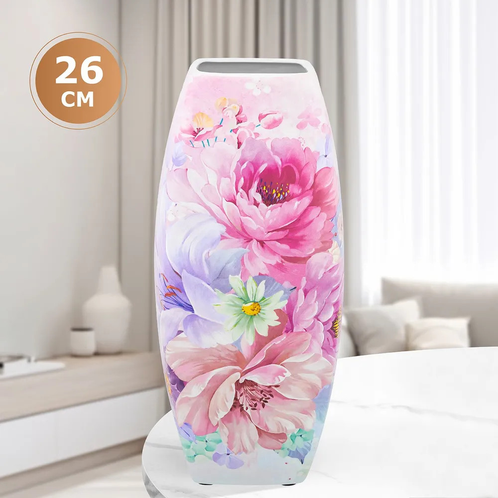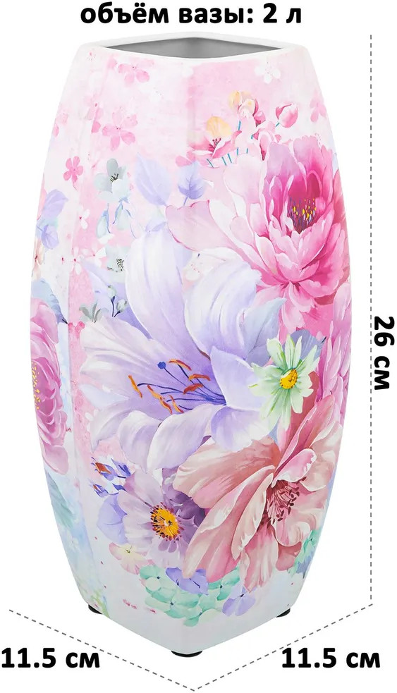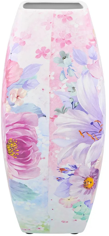 Серия: Акварель Ваза Elan Gallery «Акварель» прямоугольной формы выполнена из высококачественного фарфора нового поколения New Bone China. Благодаря современным технологиям этот вид не уступает традиционному костяному фарфору в прозрачности, белизне и прочности, но при этом гораздо экологичнее в производстве. Вазочка прямоугольной формы устойчива, с обратной стороны дна есть маленькие антискользящие накладки. На вазе изображены ромашки, пионы и лилии в розовых, белых и голубых тонах. Изображение с красивыми цветами напоминает нежный рисунок акварелью. Интерьерная ваза подойдёт для размещения букетов, искусственных цветов или сухоцветов. |