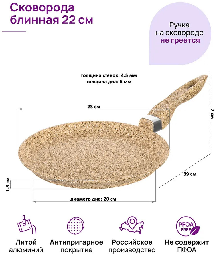 Elan Gallery Сковорода блинная «Медовый гранит»