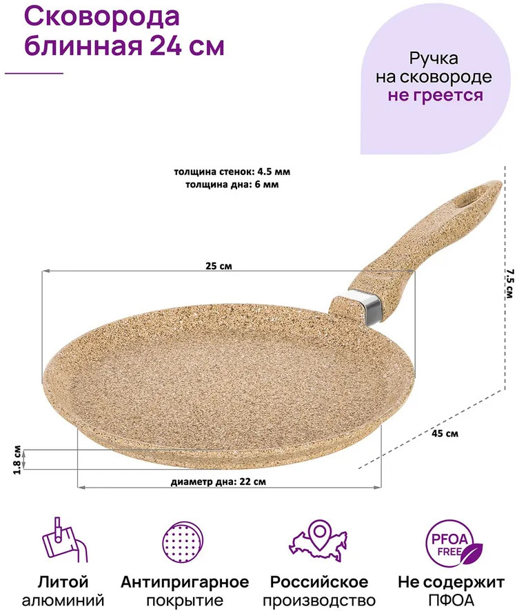 Elan Gallery Сковорода блинная «Медовый гранит»
