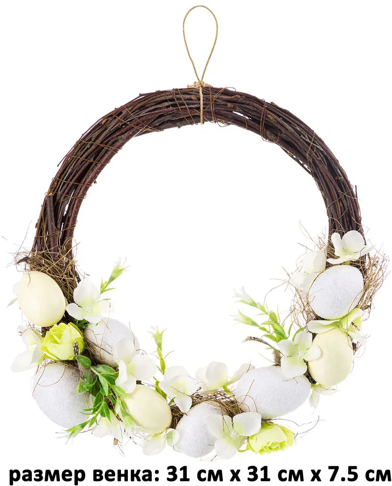 💳 Оплатить за товар можно при получении 🇰🇿 Есть бесплатная доставка по Казахстану от 1 дня 🎁 Копите бонусы с каждой покупки Серия: Солнечный свет Пасхальное украшение Elan Gallery «Солнечный свет» принесет в ваш дом атмосферу тепла, радости и уюта. Круглая форма венка символизирует бесконечный круг жизни и вечного возрождения. Декор в виде пасхальных яиц на венке выполнен из пенопласта. Плетёный венок имеет петельку для подвешивания из веревочки, благодаря которой его удобно разместить на двери или стене. Украшен веточками, искусственными цветами и пасхальными яйцами в белых и жёлтых тонах. Все содержимое венка закреплено на прочной основе. |