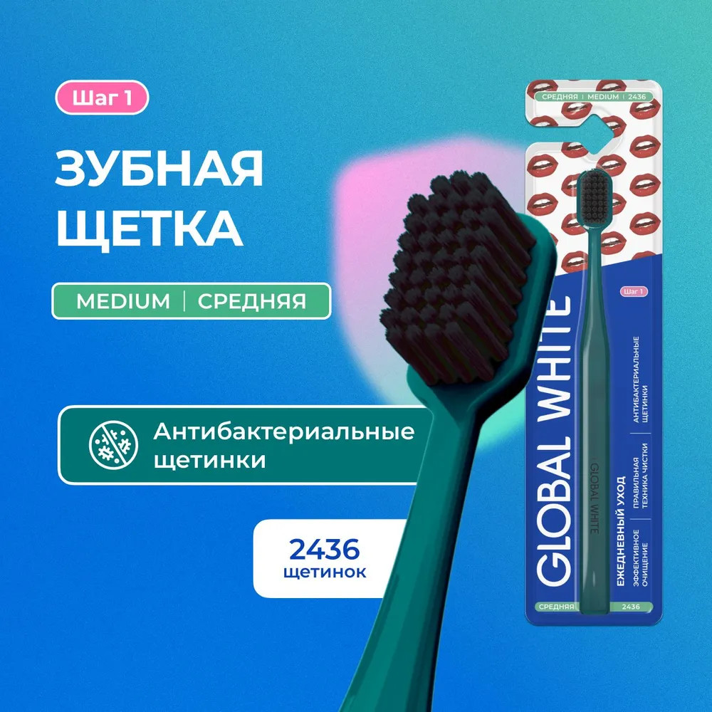 Global White Зубная щетка для чувствительных зубов и десен «Medium»+78 размер головки цвет