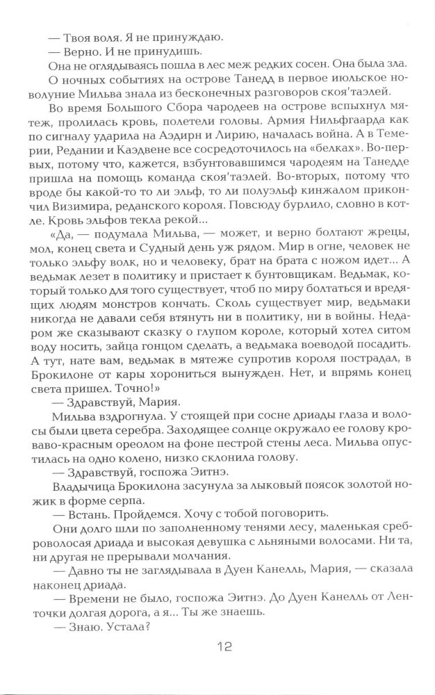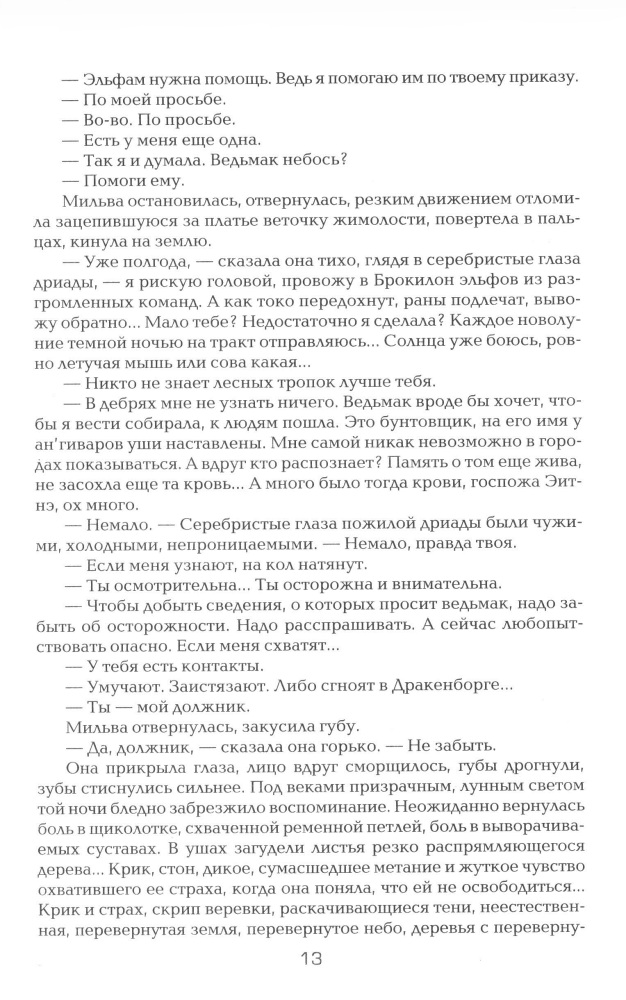 Качество издания отличное. Кроме указанного, в книгу входят "Что-то кончается..." и "Дорога без возврата". Иллюстрации отсутствуют (кроме обложки, естественно). По умолчанию подразумевается, что покупатель уже знаком с сагой, поэтому замечу лишь, что покупать эту книгу следует с первым томом ("Геральт").
