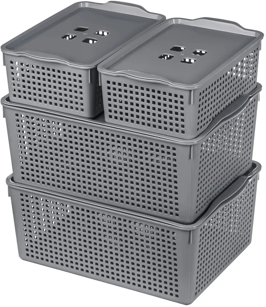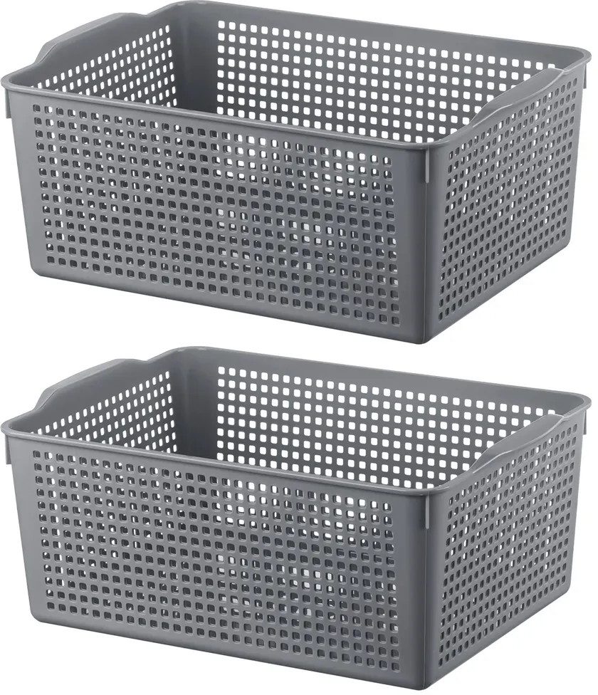 Корзины выполнены из полипропилена. Преимущество данного материала над обычным пластиком в том, что он легкий по весу и наиболее безопасный для здоровья. В универсальном контейнере белого цвета можно хранить как овощи и фрукты, так и кухонные и хозяйственные принадлежности. Используйте ёмкость для косметики, бытовой химии, моющих средств. Специальное плетение с дырочками позволяет воздуху проникать внутрь и не дает продуктам испортиться от недостатка кислорода. Корзина может быть использована для белья, полотенец и хранения различных мелочей. Такую подставку можно поставить под раковину в ванной, возле стиральной машины или на полку. Ящички можно хранить компактно — один на другом. Используйте в детской комнате как стеллаж или ящик для игрушек. Товары представлены разных объемов, форм и расцветок, что позволит собрать уникальный набор, подходящий под ваши потребности.