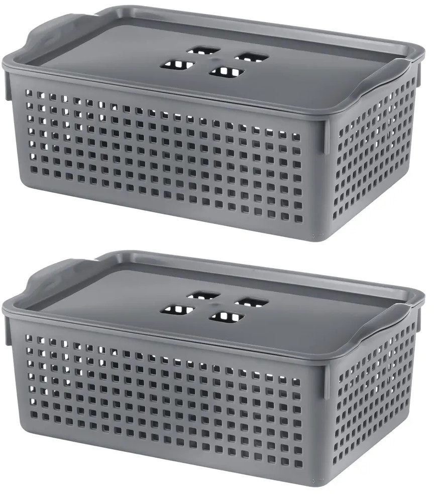 • корзина с крышкой объемом 3,8 литра (размер 29,5×18,5×10,5 см, дно 24×16 см) — 2 шт: