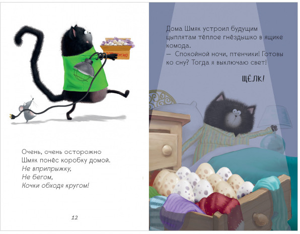 💳 Оплатить за товар можно при получении 🇰🇿 Есть бесплатная доставка по Казахстану от 1 дня 🎁 Копите бонусы с каждой покупки Серия: Котенок Шмяк Шмяку выпала большая честь — ему доверили забрать на ночь яйца из живого уголка. Из них вот-вот должны вылупиться крохотные цыплятки! Конечно, Шмяк будет следить за ними в оба. Но цыплята проклюнулись ночью, когда котёнок спал, и разбежались по всему дому. Где теперь их искать? |
