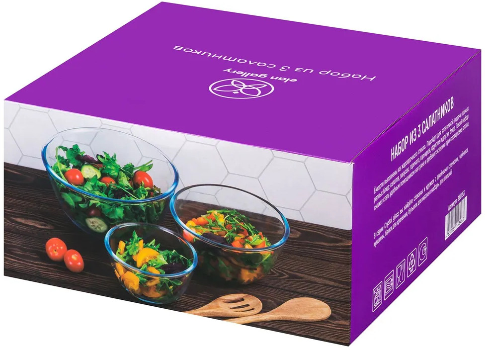 Серия: Crystal glass Набор из 3-х салатников — это идеальное решение для любителей здорового питания и красивой сервировки кухонного стола. Набор включает в себя глубокие салатники нескольких размеров, что позволяет выбирать наиболее подходящий для каждого блюда. Салатники изготовлены из высококачественного жаропрочного стекла. Продукты в такой посуде даже после тепловой обработки сохраняют полезные свойства. В салатниках вы можете не только приготовить различные блюда, но и подавать горячие салаты, закуски, нарезки фруктов или десерты. |