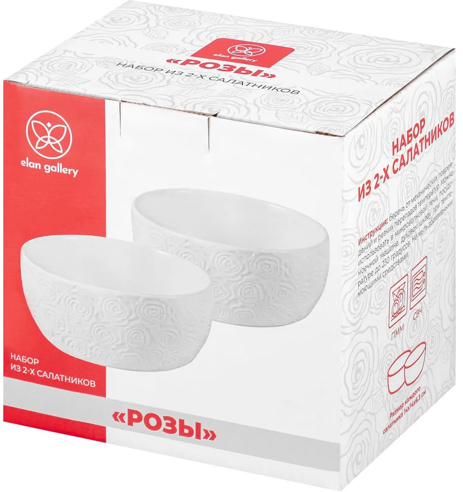 💳 Оплатить за товар можно при получении 🇰🇿 Есть бесплатная доставка по Казахстану от 1 дня 🎁 Копите бонусы с каждой покупки Серия: Розы Набор из двух салатников Elan Gallery «Розы» выполнен из белого фарфора с рельефным узором. Размер каждого салатника — 14×14×6,3 см, объём — 600 мл. Используйте тарелочки для любых закусок и угощения гостей на празднике или вечеринке. Подойдут не только для салатов, можно использовать для сервировки любых сладостей, например, конфет или печенья. Положите в фарфоровую ёмкость кабачковую икру или свежие овощи, чтобы порадовать гостей. Можно использовать в микроволновой печи и мыть в посудомоечной машине. Поставляются в стильной картонной упаковке. Подарочные фарфоровые блюда порадуют ваших близких на любой праздник. Кухонный инвентарь с рельефным узором в виде цветов станет незаменимым помощником при сервировке стола и предметом декора вашего дома! |