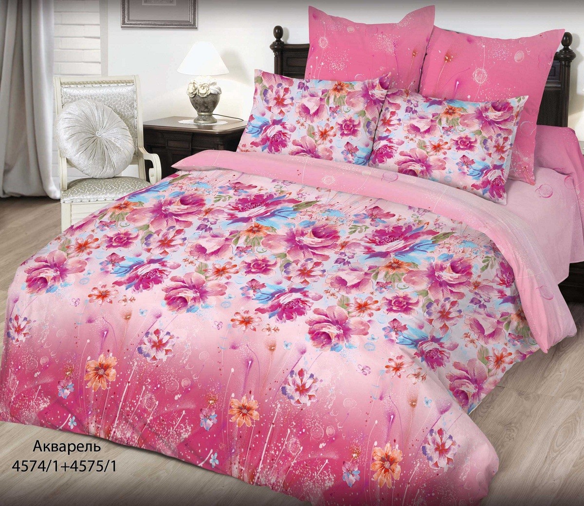 Комплект постельного белья «Акварель» изготовлен из ранфорса (100% хлопок). Ранфорс - плотная, в тоже время мягкая ткань, похожая на бязь. Ранфорс отличается высокой прочностью и долговечностью, отлично держит форму, не линяет при стирке, не образует катышков и долго сохраняет свои потребительские качества.