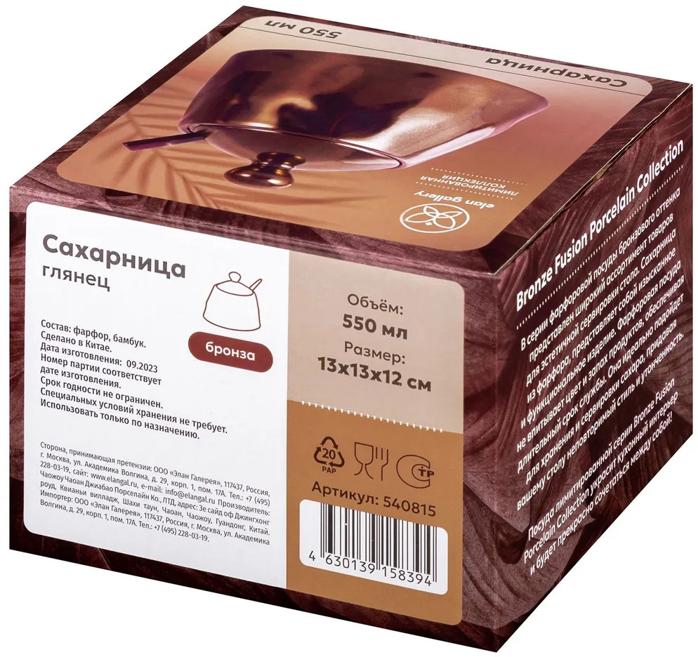 Elan Gallery Сахарница с ложкой «Бронза»+215 вместительная насыщенный цвет стильный вид