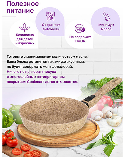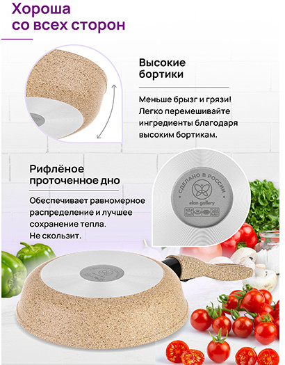 Elan Gallery Сковорода глубокая с крышкой «Медовый гранит»