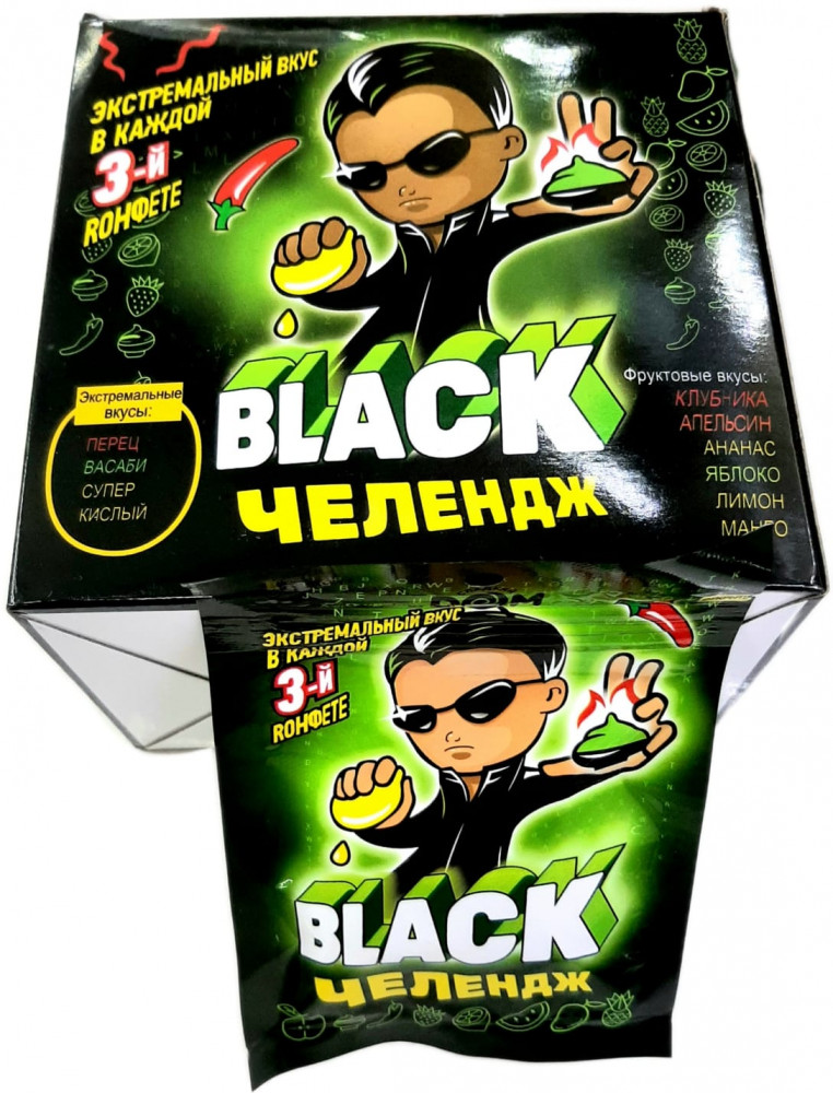 Сладкий мир Жевательные конфеты «Black Челендж» с фруктовым и экстремальным вкусом