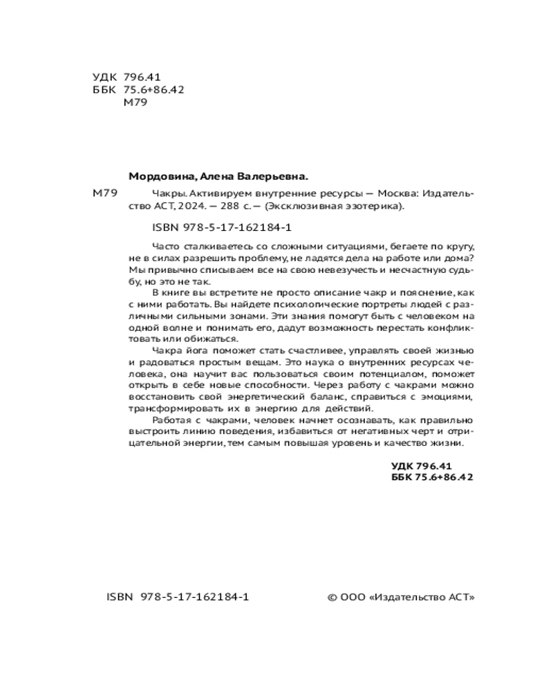 💳 Оплатить за товар можно при получении 🇰🇿 Есть бесплатная доставка по Казахстану от 1 дня 🎁 Копите бонусы с каждой покупки Серия: Эксклюзивная эзотерика Часто сталкиваетесь со сложными ситуациями, бегаете по кругу, не в силах разрешить проблему, не ладятся дела на работе или дома? Мы привычно списываем все на свою невезучесть и несчастную судьбу, но это не так. В книге вы встретите не просто описание чакр и пояснение, как с ними работать. Вы найдете психологические портреты людей с различными сильными зонами. Эти знания помогут быть с человеком на одной волне и понимать его, дадут возможность перестать конфликтовать или обижаться. |