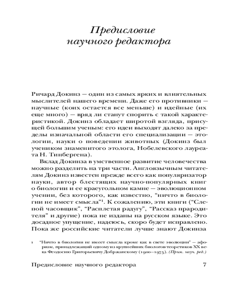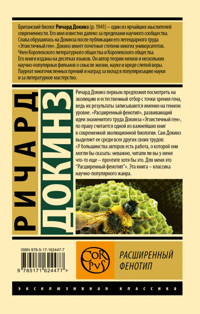 💳 Оплатить за товар можно при получении 🇰🇿 Есть бесплатная доставка по Казахстану от 1 дня 🎁 Копите бонусы с каждой покупки Серия: Эксклюзивная классика Ричард Докинз — крупный британский биолог, автор теории мемов. Его блестящие книги сыграли огромную роль в возрождении интереса к научно-популярной литературе. Ясность изложения, юмор и железная логика делают даже строго научные труды Докинза доступными широкому кругу читателей. «Расширенный фенотип» развивает идеи его знаменитой книги «Эгоистичный ген» (1976), где эволюция и естественный отбор рассматриваются «с точки зрения гена». Эти идеи, вызвавшие бурную полемику, уже прочно вошли в научный обиход, а «Расширенный фенотип» по праву считается одной из важнейших книг в современной эволюционной биологии. |