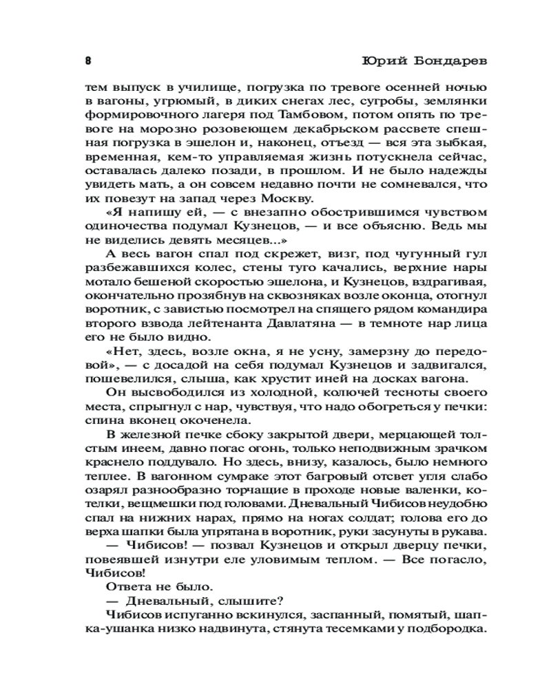 Юрий Васильевич Бондарев родился в городе Орске Оренбургской области. Окончил Чкаловское артиллерийское училище и Литературный институт им. А. М. Горького (1951г).Дебютировал в печати в 1949 году. |