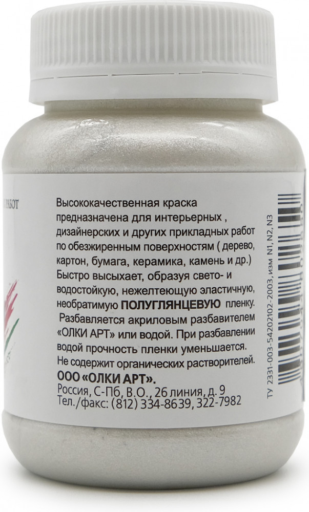 Olki Краска акриловая для дизайнерских работ «Металлик», перламутровый