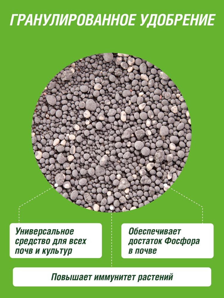 Удобрение «Фосфорное» минеральное гранулированное является сбалансированной подкормкой, использующейся при выращивании овощных культур. Удобрение способствует интенсивному и полноценному развитию растений, а также и обильному цветению, увеличению урожайности. |