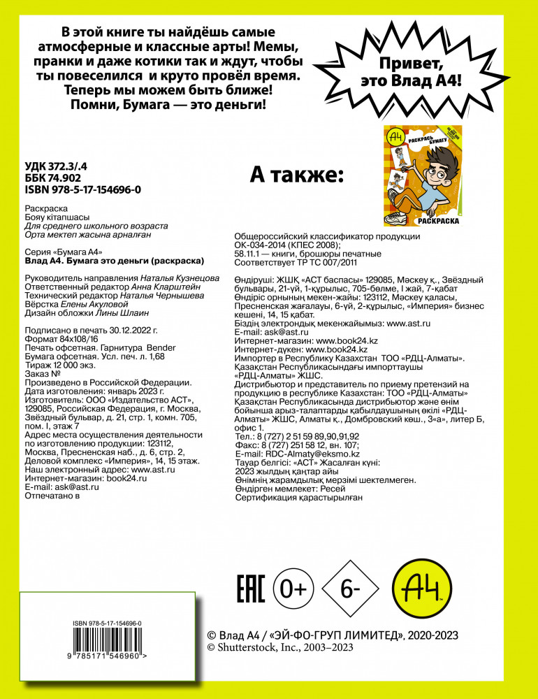 Влад А4. Бумага это деньгиВ данный момент этот товар отсутствует в продаже. Возможно, у нас найдется аналогичный или похожий товар здесь. Серия: Раскраски_Светофор В этой книге ты найдёшь самые атмосферные и классные арты! Мемы, пранки и даже котики так и ждут, чтобы ты повеселился и круто провёл время. Теперь мы можем быть ближе! Помни, Бумага — это деньги! |
