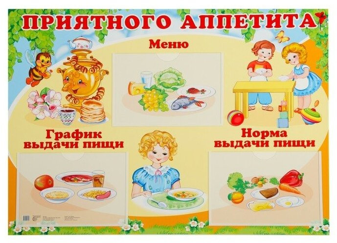 💳 Оплатить за товар можно при получении 🇰🇿 Есть бесплатная доставка по Казахстану от 1 дня 🎁 Копите бонусы с каждой покупки Серия: Информационные стенды для ДОУ Для оформления обеденных зон и столовых детских садов наше издательство выпускает стенд формата А2 «Приятного аппетита». Он позволит наглядно разместить сведения о том, чем питается ребенок в течение дня, какова норма и график выдачи пищи. Это информация очень актуальна для родителей, младших воспитателей. 3 пластиковых кармана размером 230×158 мм. |