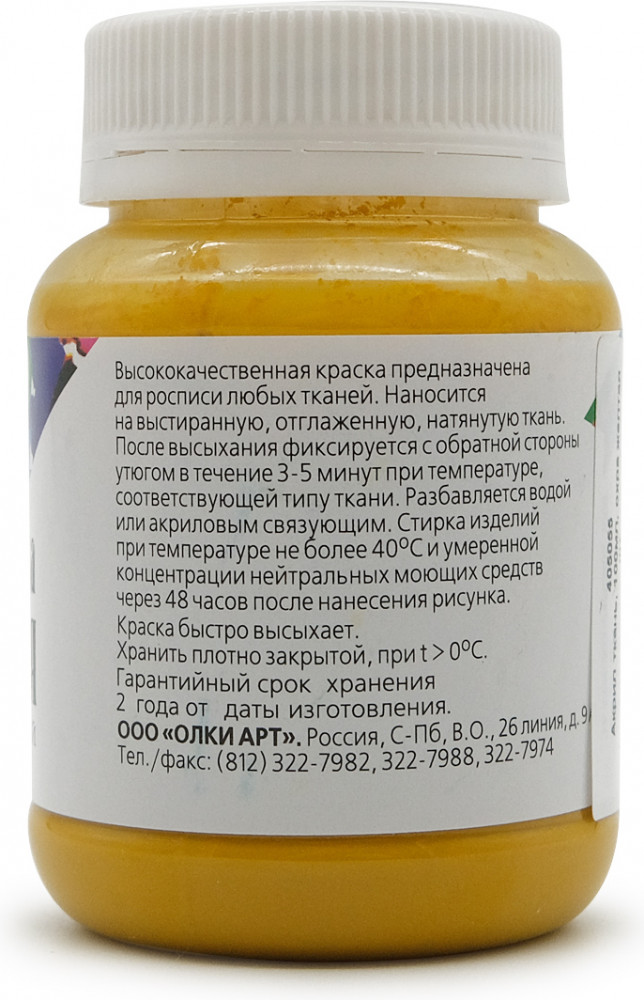 Акриловые краски Olki подходят для любых тканей: шелковых, хлопчатобумажных, льняных, синтетических. Позволяют работать в различных техниках: аэрография, трафаретная роспись, батик, шибори. Не содержат вредных веществ и подходят даже для детского творчества. Разные цвета допускается смешивать между собой или разбавлять. Чтобы разбавить краску, добавьте небольшое количество воды или специального растворителя. Краски быстро высыхают, не тускнеют и не выгорают на солнце. Изделие, расписанное акрилом, можно стирать в ручном режиме при температуре 30–40 градусов Цельсия.