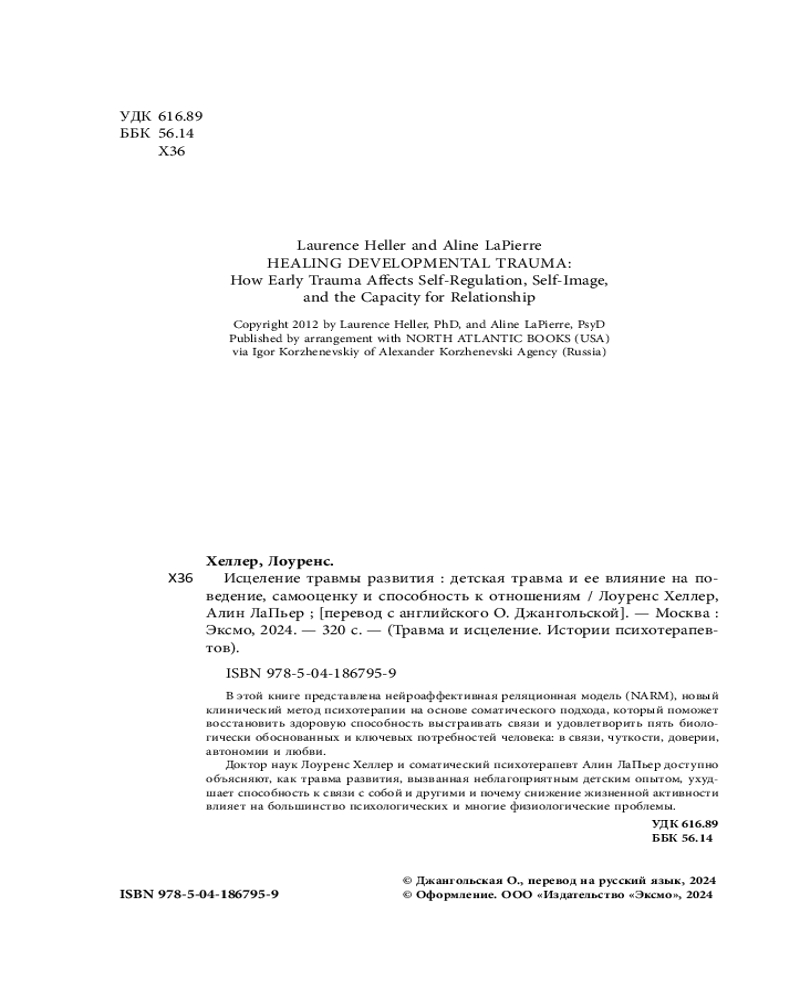 💳 Оплатить за товар можно при получении 🇰🇿 Есть бесплатная доставка по Казахстану 🎁 Копите бонусы с каждой покупки Серия: Травма и исцеление. Истории психотерапевтов Доктор наук Лоуренс Хеллер и соматический психотерапевт Алин ЛаПьер уверены, что большинство эмоциональных переживаний и проблем можно объяснить пятью биологически обоснованными ключевыми потребностями: в связи, чуткости, доверии, автономии и любви. Специалисты доступно объясняют, как травма развития, вызванная неблагоприятным детским опытом, ухудшает способность к связи с собой и другими и почему снижение жизненной активности влияет на большинство психологических и многих физиологических проблем. |