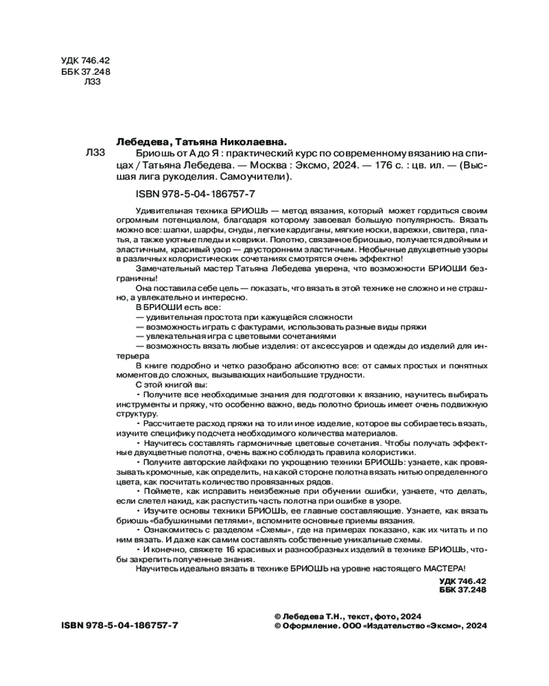 | Бриошь от А до Я. Практический курс по современному вязанию на спицах Татьяна Николаевна Лебедева +77 (бонусов)
