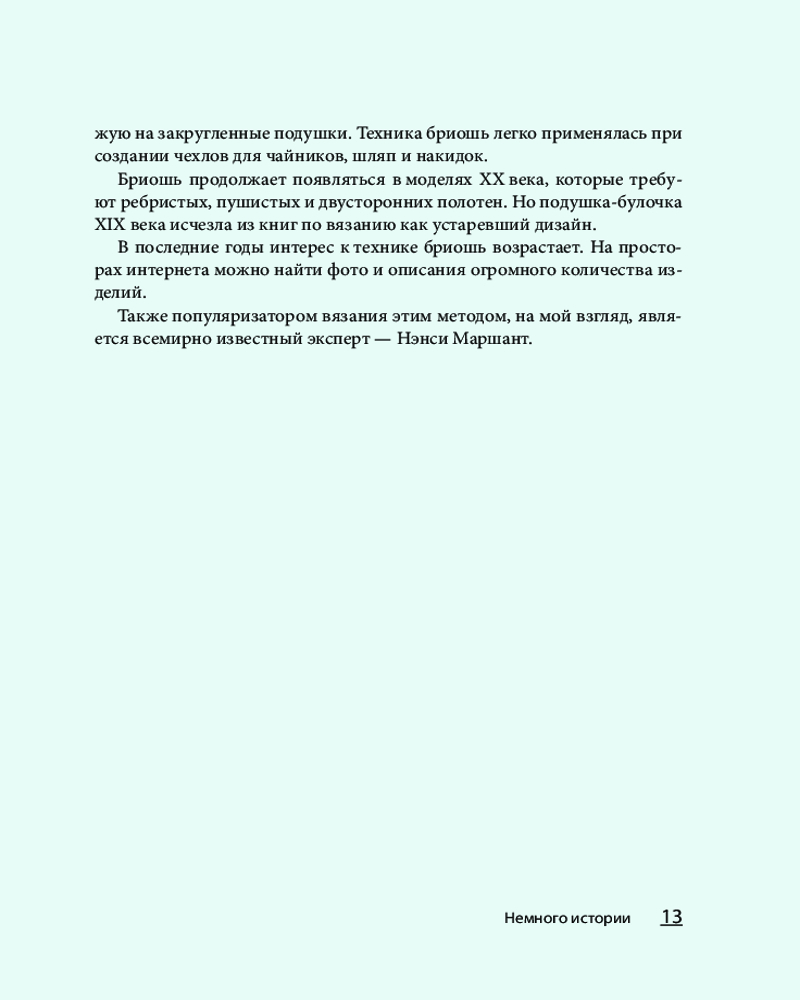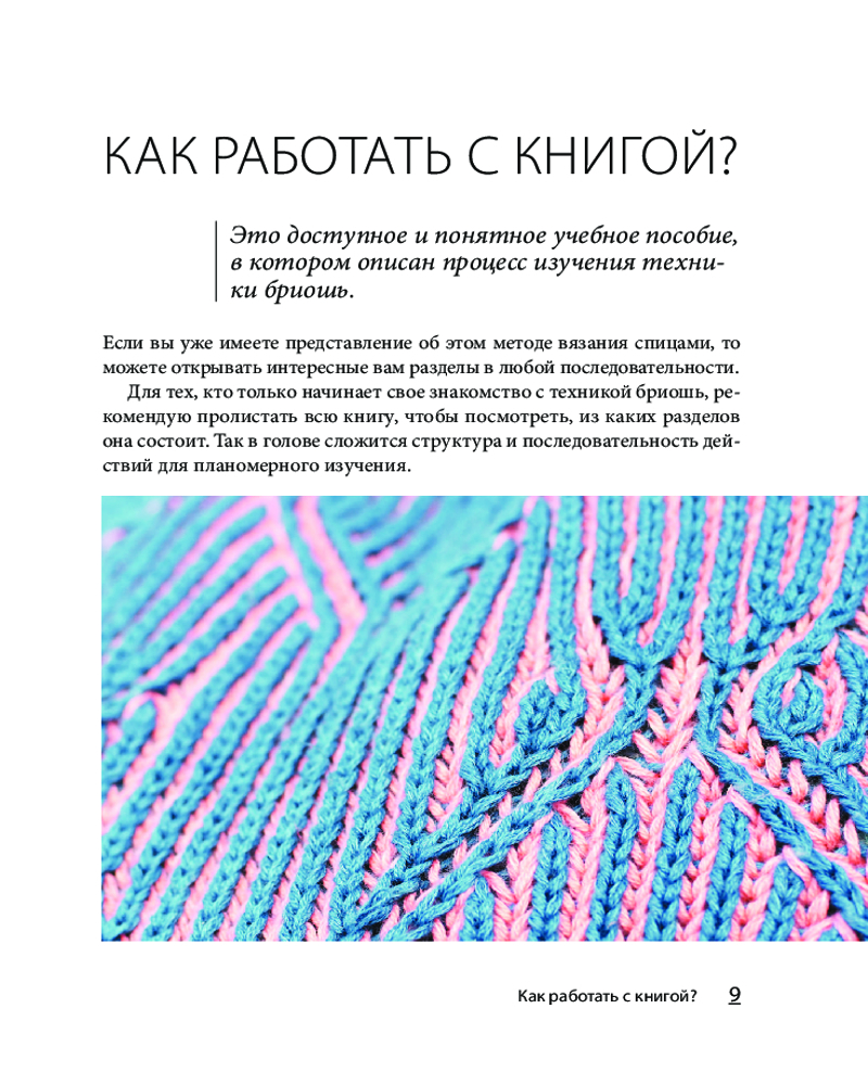 • получите все необходимые знания для подготовки к вязанию, научитесь выбирать инструменты и пряжу, что особенно важно, ведь полотно бриошь имеет очень подвижную структуру;