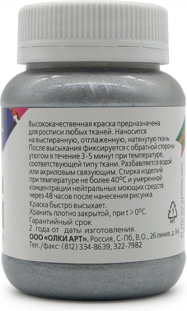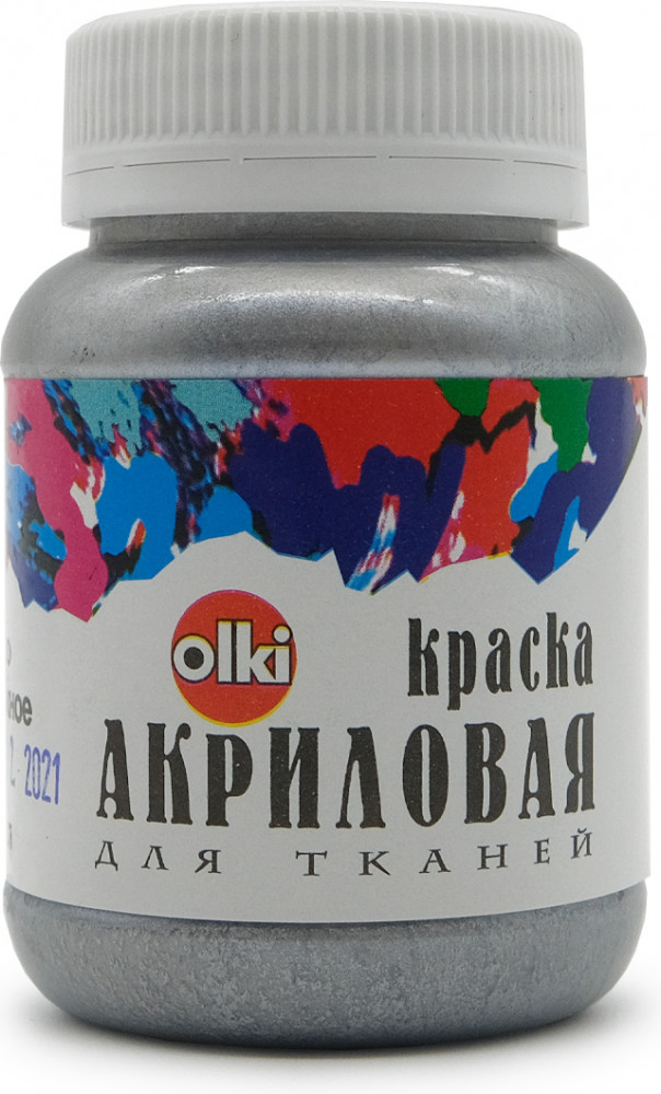 Olki Краска акриловая для ткани, серебро жемчужное