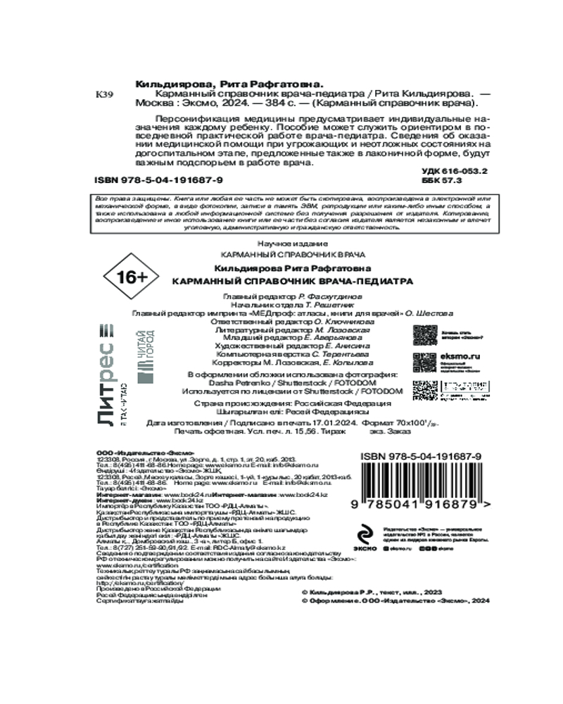 💳 Оплатить за товар можно при получении 🇰🇿 Есть бесплатная доставка по Казахстану от 1 дня 🎁 Копите бонусы с каждой покупки Серия: Карманный справочник врача Высокие темпы научного развития медицины, ежегодное появление огромного количества лекарственных препаратов требуют от врача постоянной аналитической работы. Врач-педиатр решает не только вопросы рационального выбора препарата: ему необходимо учитывать возраст ребенка, особенности растущего организма, назначать режимные, диетические и другие методы терапии, а также руководствоваться Федеральными Клиническими рекомендациями. В данном пособии основное внимание уделено фармакотерапии, базирующейся на комбинации нескольких лекарственных средств, выбор которых зависит от основного заболевания с недопустимостью полипрагмазии. |