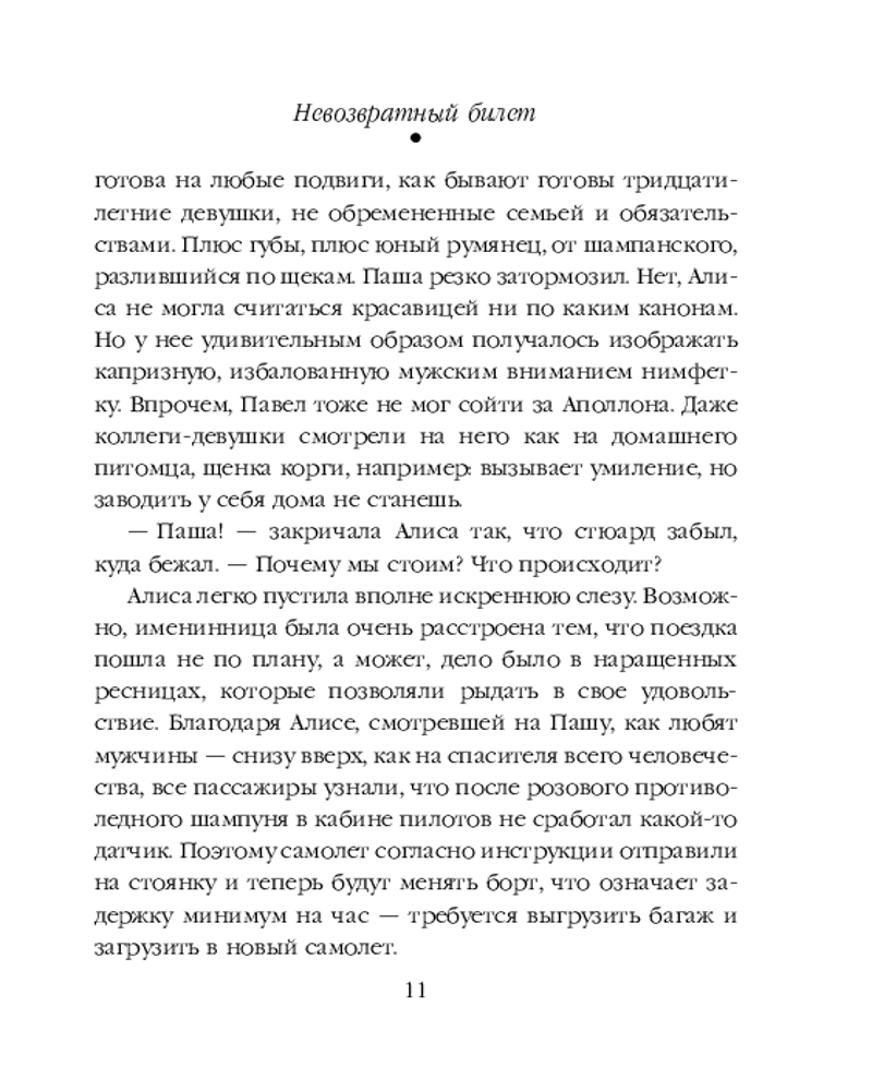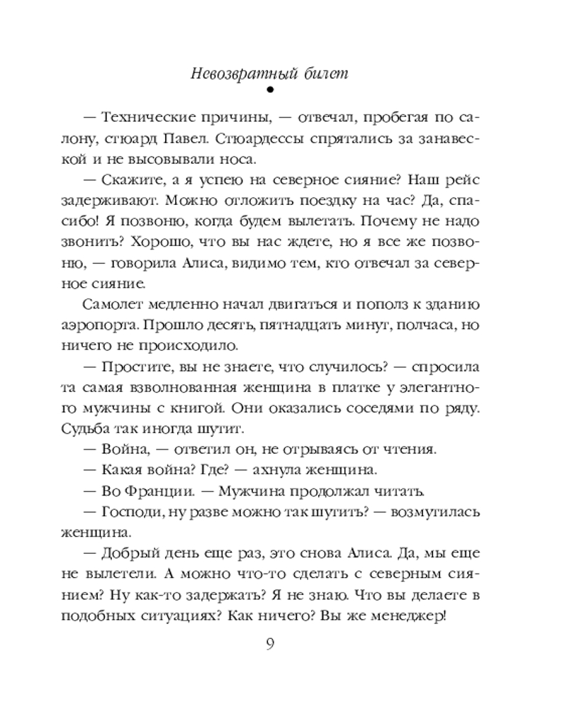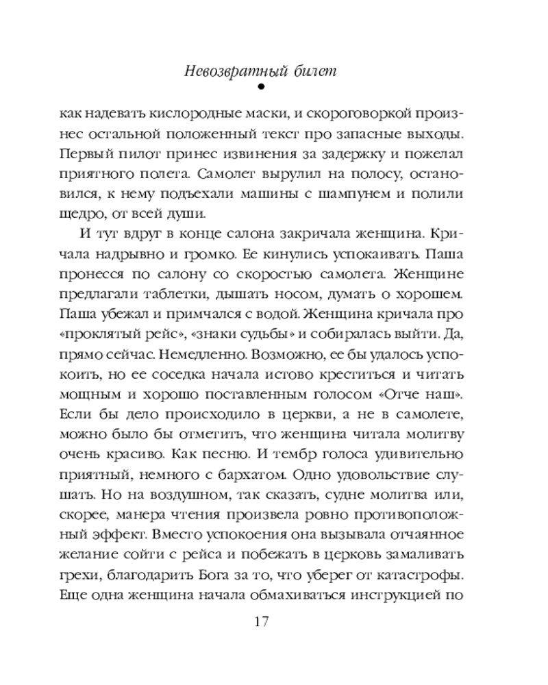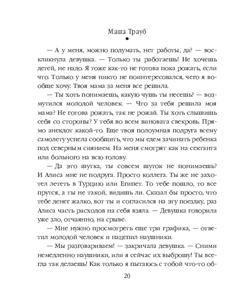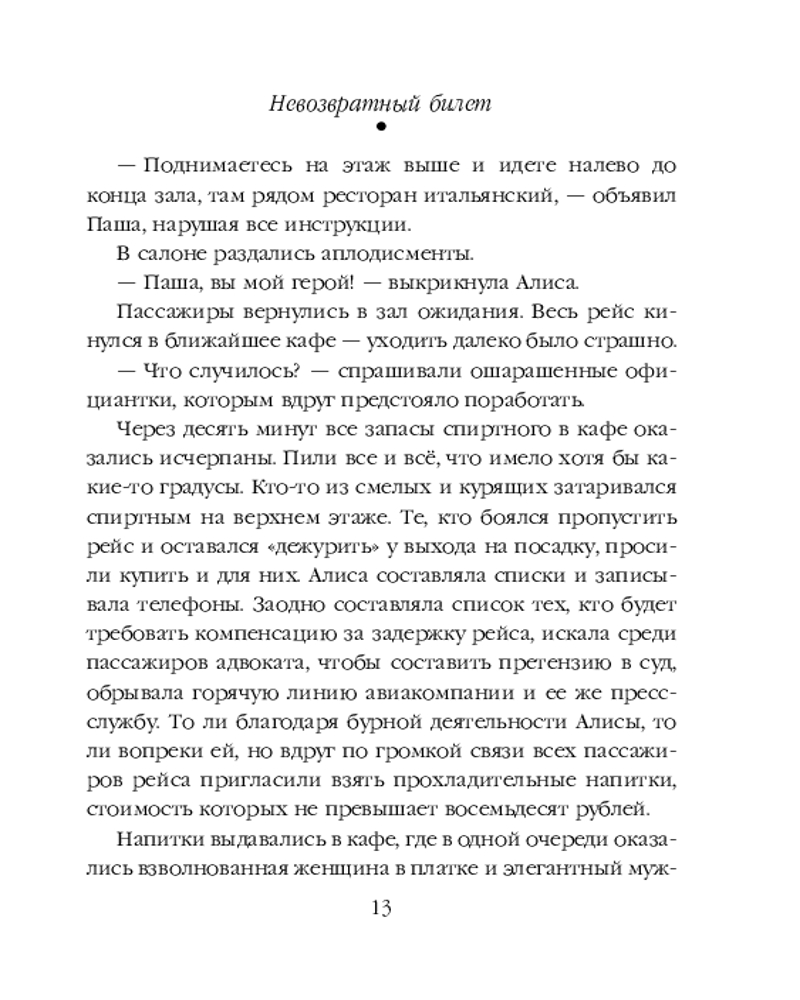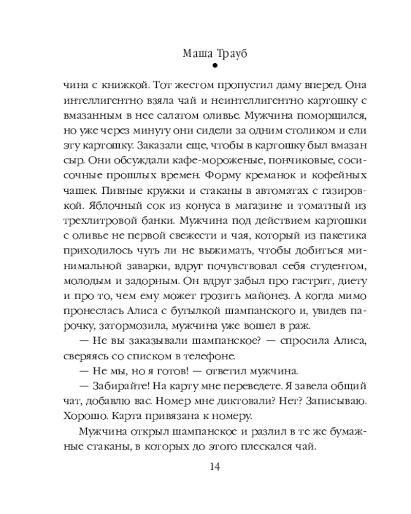 Невозвратный билетВ данный момент этот товар отсутствует в продаже. Возможно, у нас найдется аналогичный или похожий товар здесь. Серия: Проза Маши Трауб. Жизнь как в зеркале (обложка) Маша Трауб в который раз удивляет своих читателей. «Невозвратный билет» — сборник из четырех историй, калейдоскоп чужих судеб, которые переживаешь как свои. Ситуации, знакомые каждому, когда случай вмешивается в размеренное течение нашей жизни, разубеждая в том, что мы можем ею управлять. Но ведь бывает, что в момент наивысшего напряжения, когда, казалось бы, все проиграно, мы собираемся и все меняем, переигрываем судьбу. Не даем обстоятельствам оказаться сильнее нас. |