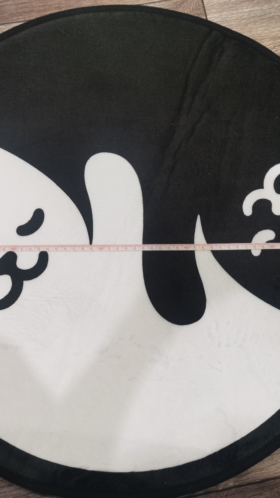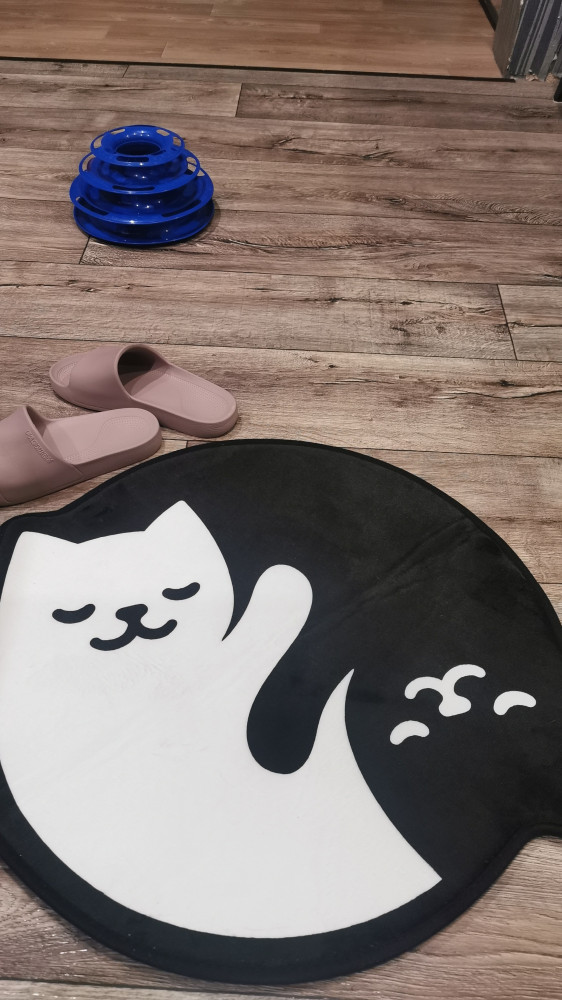Интересный коврик. Мягкий, ногам тепло, рядом с малым диванчиком норм, кошки мои посматривают на него, но пока боятся ложиться. Размер от ушка до ушка 67см.