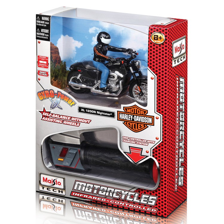 Maisto Модель мотоцикла "Harley Davidson XL 1200N Nightster" на радиоуправлении.В данный момент этот товар отсутствует в продаже. Возможно, у нас найдется аналогичный или похожий товар здесь. Уменьшенная модель мотоцикла "Harley Davidson XL 1200N Nightster" на радиоуправлении. Внутри мотоцикла вращается моховик, благодаря чему мотоцикл удерживается в вертикальном положении. |