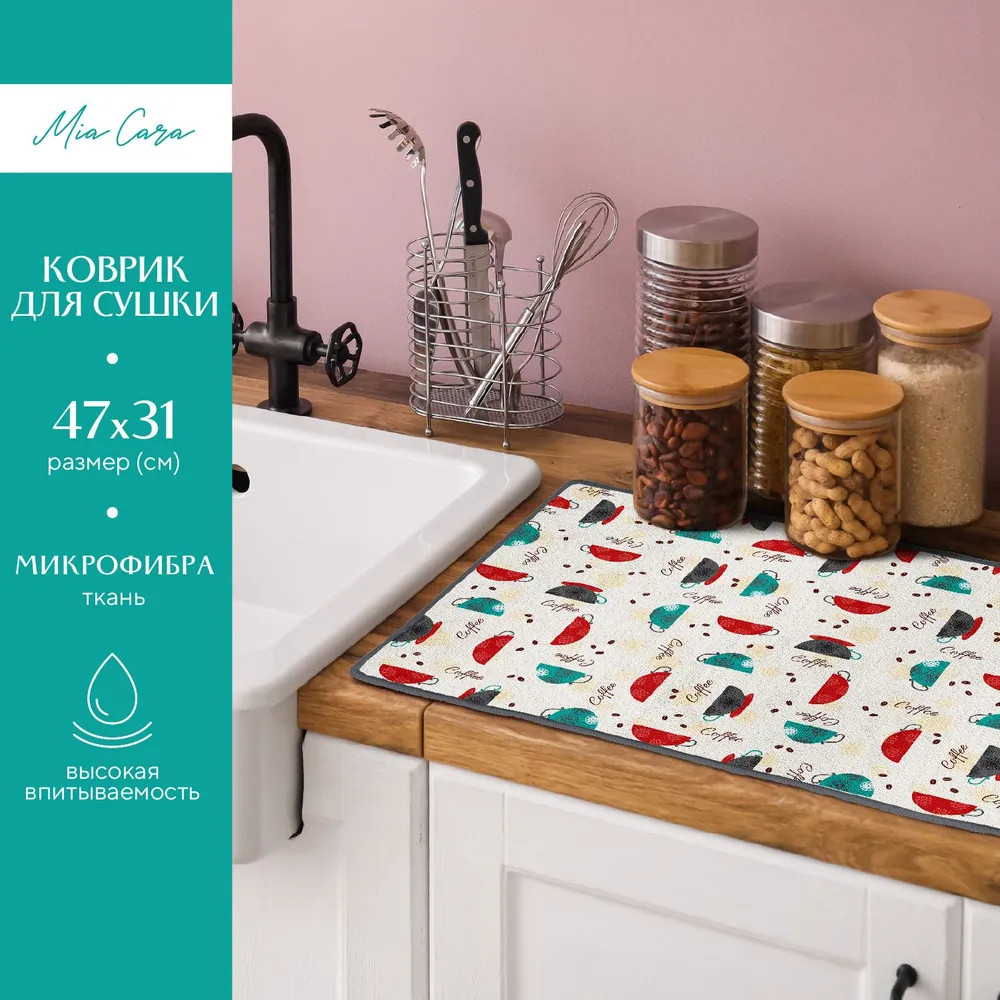 Mia Cara Коврик для сушки посуды «Morning coffee»В данный момент этот товар отсутствует в продаже. Возможно, у нас найдется аналогичный или похожий товар здесь. Серия: Morning coffee Коврик для сушки посуды поддержит порядок и станет элементом декора на вашей кухне. Коврик — это хороший выбор для сушки мокрой посуды. Он прочный и термостойкий, устойчив к воде и моющим средствам. Чудо сушилку используют для сушки тарелок, столовых приборов, детских бутылочек, мокрых фруктов, овощей и зелени. Его можно использовать для шкафчика и ящика. Универсальный кухонный коврик под посуду безопасен для здоровья и гипоаллергенный. |