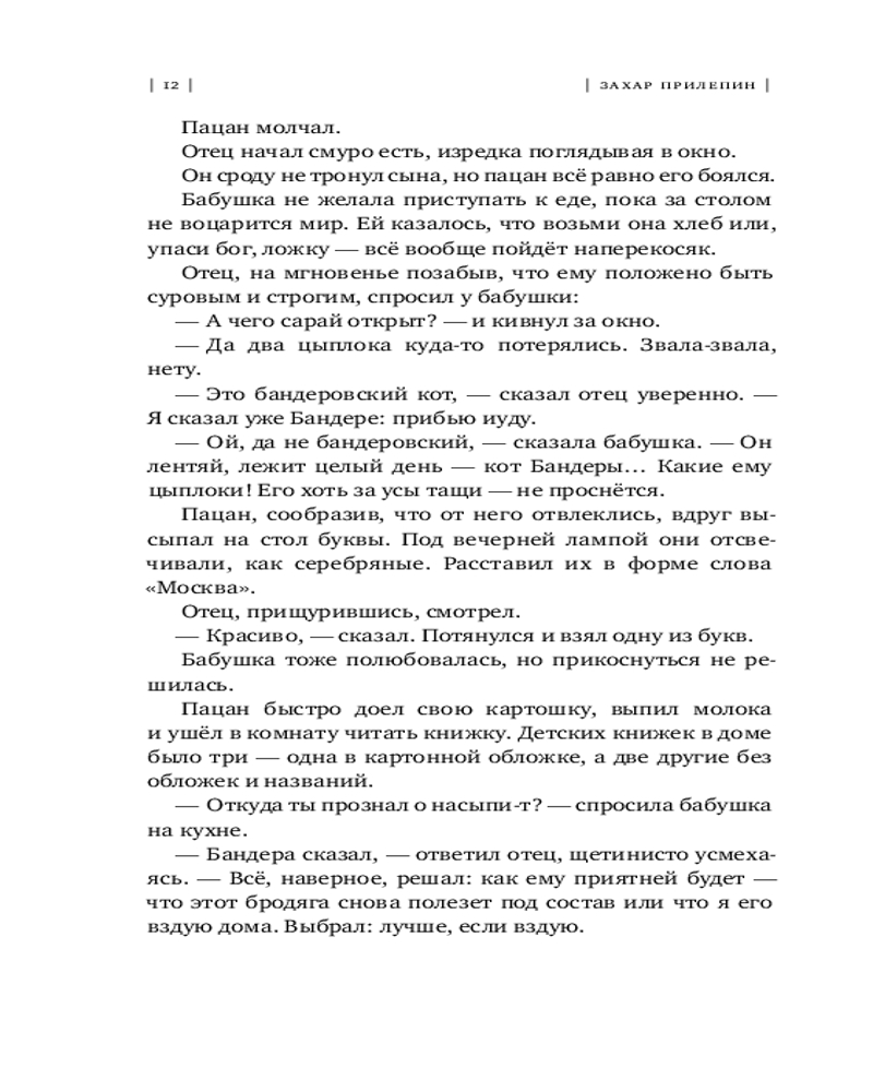 В данный момент этот товар отсутствует в продаже. Возможно, у нас найдется аналогичный или похожий товар здесь. Серия: Захар Прилепин: лучшее Захар Прилепин — прозаик, публицист, музыкант, обладатель премий «Национальный бестселлер», «СуперНацБест» и «Ясная Поляна». Автор романов «Обитель», «Санькя», «Патологии», «Черная обезьяна», «Некоторые не попадут в ад», сборников рассказов «Грех», «Семь жизней», «Ополченский романс» и «Ботинки, полные горячей водкой».