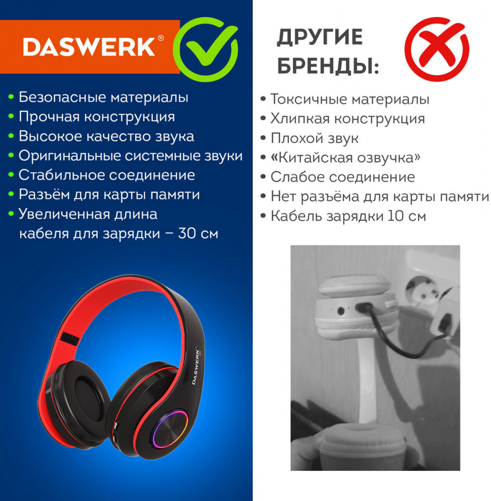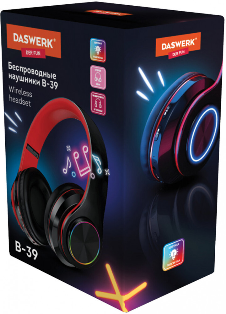 Daswerk Наушники беспроводныехороший звук складные подсветка хрупкий пластик приём радио В данный момент этот товар отсутствует в продаже. Возможно, у нас найдется аналогичный или похожий товар здесь. Беспроводные наушники с подсветкой — это яркая и надёжная гарнитура. Слушай музыку, аудиокниги, играй! Беспроводные наушники DASWERK имеют светодиодную подсветку внутри, которая ярко переливается, создает праздничное настроение и является привлекательным отличием от других моделей. Подсветку можно отключить и продолжить пользоваться наушниками. |