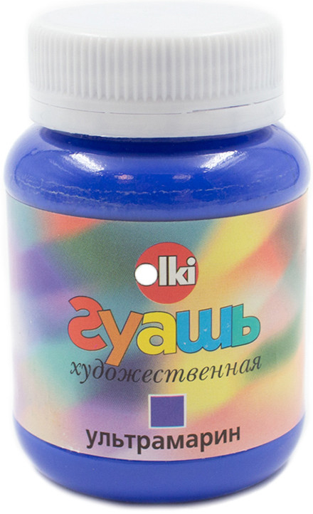 Гуашь художественная от Olki — плотная непрозрачная краска с высокой укрывистостью. Имеет насыщенные цвета, после высыхания сохраняет яркость, становится матовой и бархатистой. Если требуется более мягкий оттенок, краску легко разбавить водой. Хорошо ложится на бумагу, картон, фанеру, а также грунтованный холст.