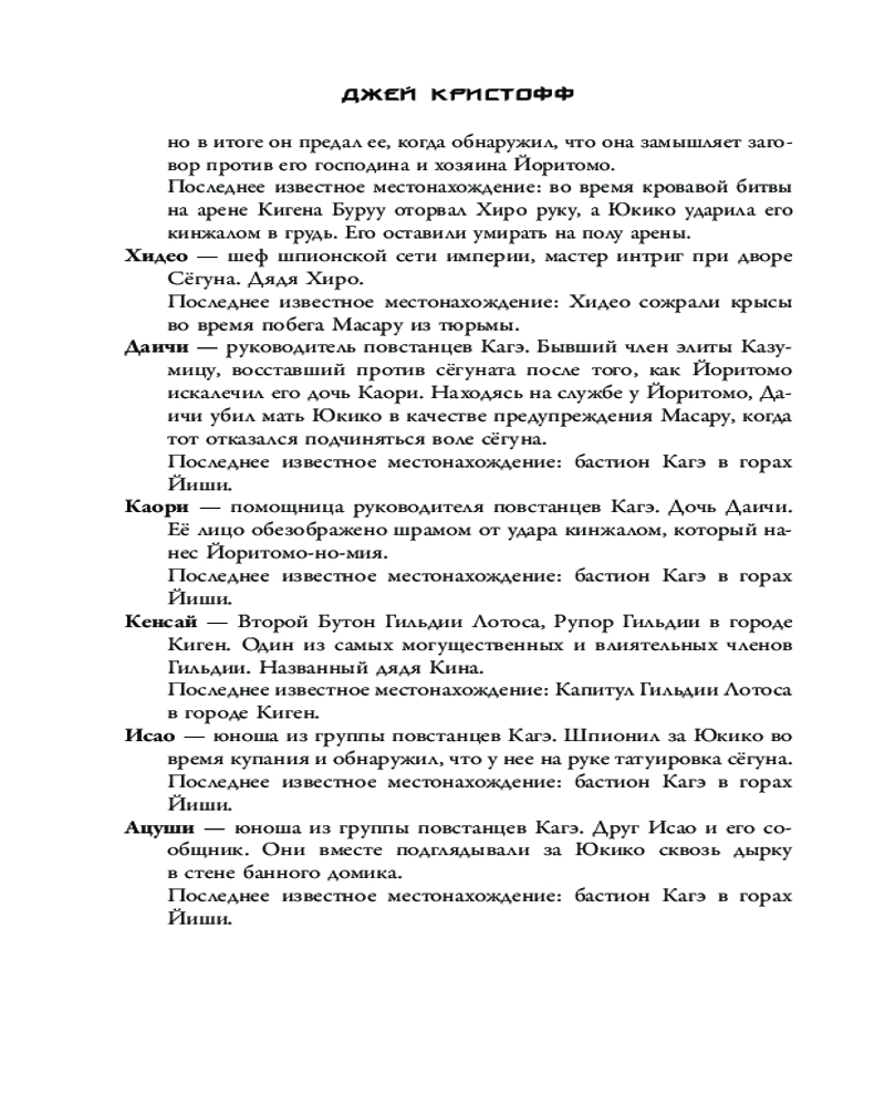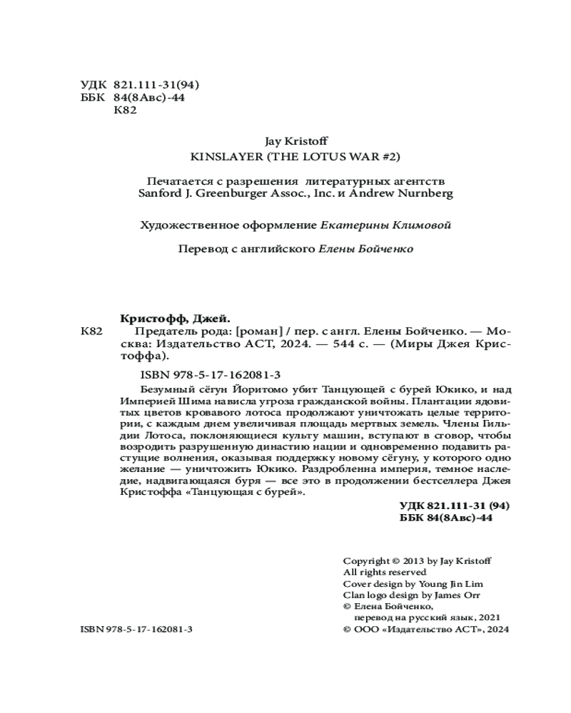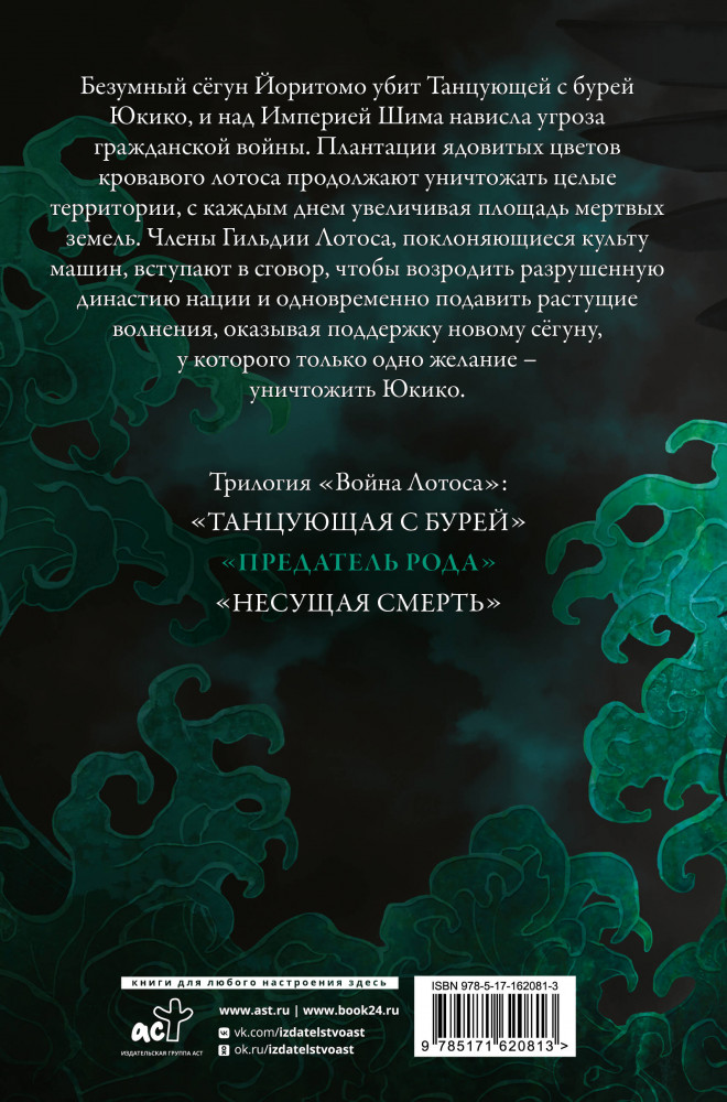 Предатель родаВ данный момент этот товар отсутствует в продаже. Возможно, у нас найдется аналогичный или похожий товар здесь. Серия: Миры Джея Кристоффа Безумный сёгун Йоритомо убит Танцующей с бурей Юкико, и над Империей Шима нависла угроза гражданской войны. Плантации ядовитых цветов кровавого лотоса продолжают уничтожать целые территории, с каждым днем увеличивая площадь мертвых земель. Члены Гильдии Лотоса, поклоняющиеся культу машин, вступают в сговор, чтобы возродить разрушенную династию нации и одновременно подавить растущие волнения, оказывая поддержку новому сёгуну, у которого только одно желание — уничтожить Юкико. |