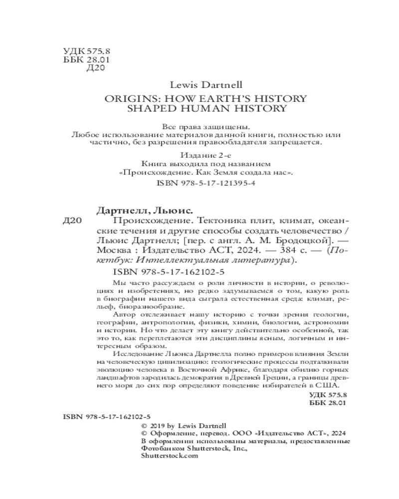 💳 Оплатить за товар можно при получении 🇰🇿 Есть бесплатная доставка по Казахстану от 1 дня 🎁 Копите бонусы с каждой покупки Серия: Покетбук: Интеллектуальная литература Мы часто рассуждаем о роли личности в истории, о революциях и изобретениях, но редко задумываемся о том, какую роль в биографии нашего вида сыграла естественная среда: климат, рельеф, биоразнообразие. Автор отслеживает нашу историю с точки зрения геологии, географии, антропологии, физики, химии, биологии, астрономии и истории. Но что делает эту книгу действительно особенной, так это то, как переплетаются эти дисциплины ясным, логичным и интересным образом. |