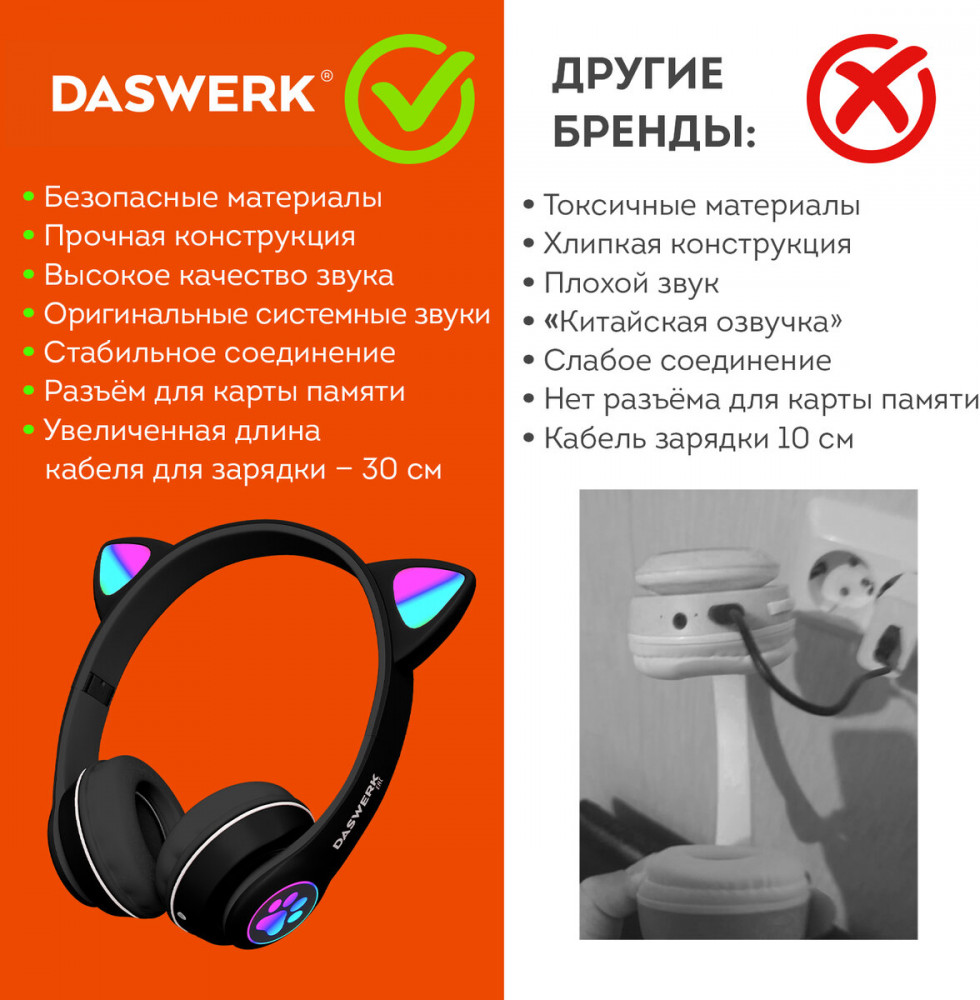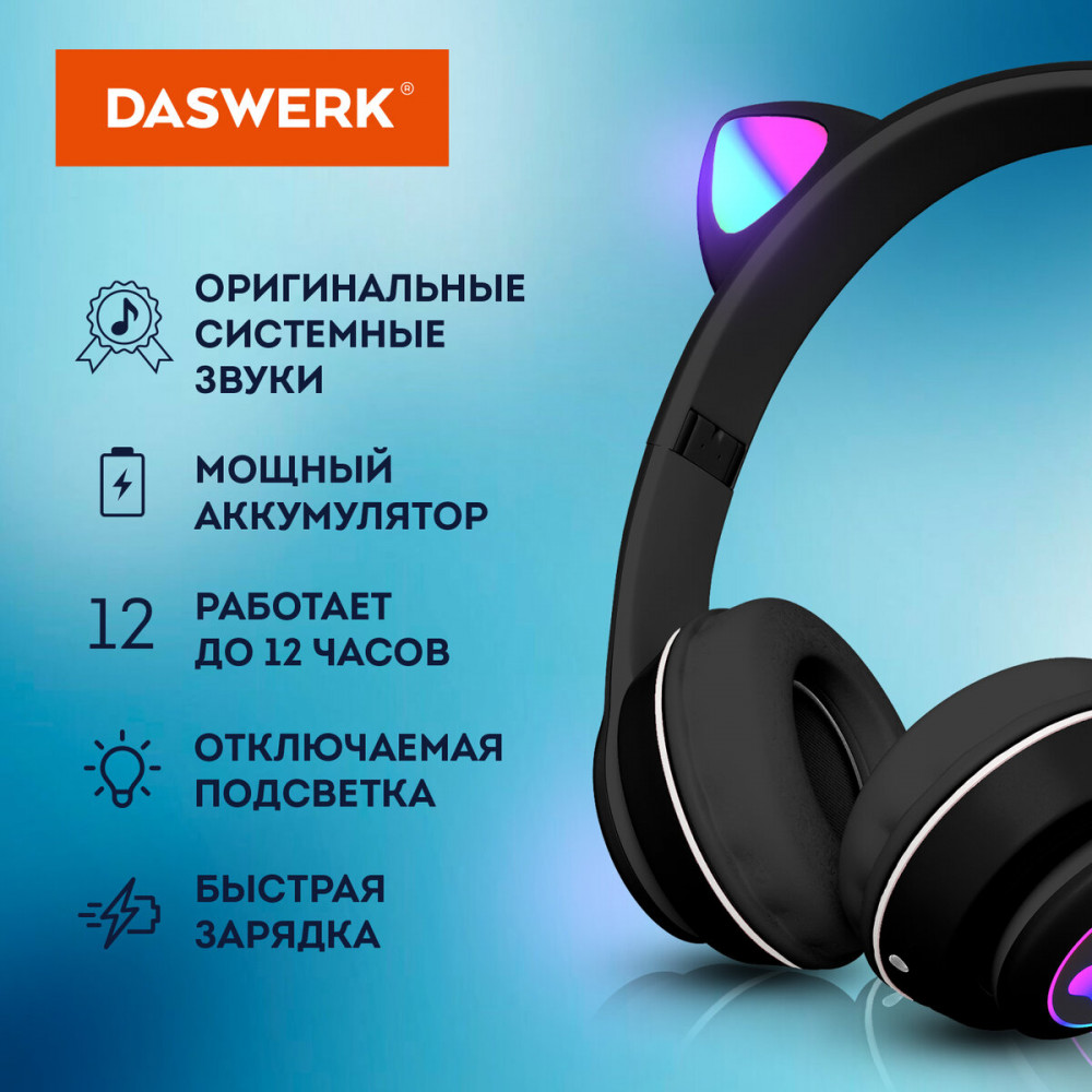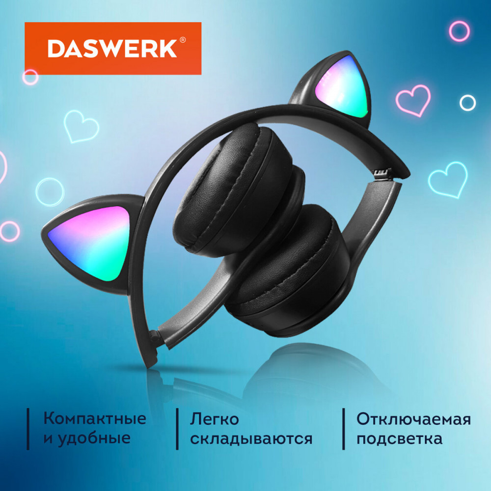 | Daswerk Наушники беспроводные игровые накладные, с ушками+117 (бонусов)