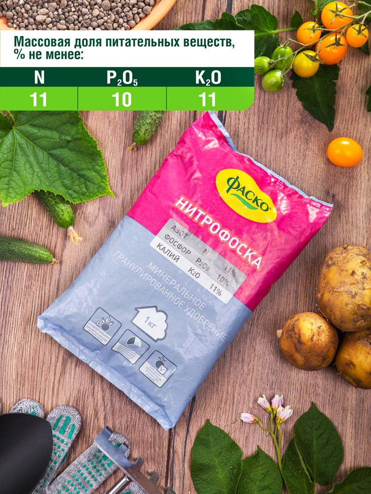 Фаско Удобрение «Нитрофоска»В данный момент этот товар отсутствует в продаже. Возможно, у нас найдется аналогичный или похожий товар здесь. Стимулирует развитие корневой системы и формирование зелёной массы. Наличие нескольких питательных веществ в одной грануле способствует быстрому усвоению удобрения, увеличивает урожайность и качество плодов. Использование удобрения улучшает качество грунта, а высокая эффективность применения гарантирует прекрасный результат на любом типе почвы. Гарантирует длительный эффект от использования в качестве подкормки и во время основного внесения. |