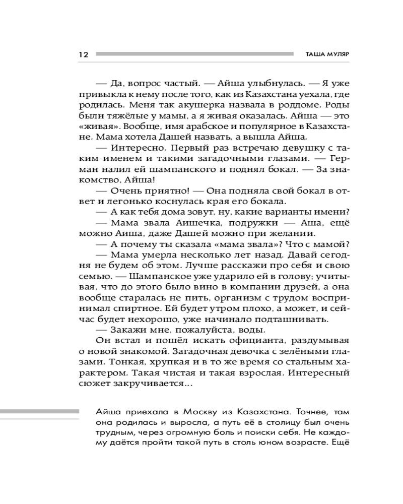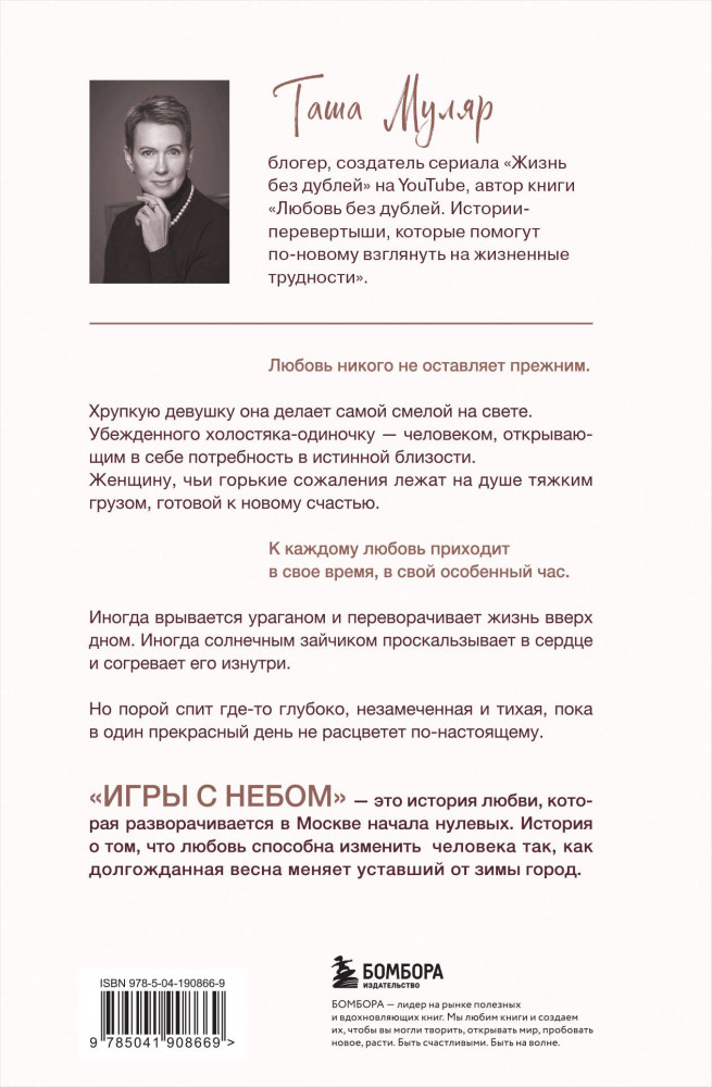 Игры с небом. История про любовь, которая к каждому приходит своим путёмВ данный момент этот товар отсутствует в продаже. Возможно, у нас найдется аналогичный или похожий товар здесь. Серия: Жизнь без дублей. Просто о непростом с Ташей Муляр Две удивительные героини. Две непохожие истории. Судьбоносные решения, которые им предстоит принять, оставят в душе читателя чувство светлой грусти. Вам ни за что не захочется расставаться с этими невероятно сильными женщинами. Этот трогательный роман поможет осознать ценность любви и счастья. Он о том, как важно уметь прислушиваться к себе и не отступать. Когда кажется, что стоит все бросить и выбрать легкий путь, героини Таши Муляр доказывают, что истинная любовь стоит ожидания. |