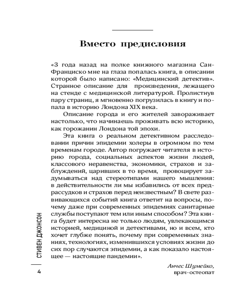 💳 Оплатить за товар можно при получении 🇰🇿 Есть бесплатная доставка по Казахстану от 1 дня 🎁 Копите бонусы с каждой покупки Серия: Книги, о которых говорят Захватывающий детектив, с первых страниц вовлекающий читателя в путешествие по Лондону середины XIX века. Только представьте: крупнейший город мира с населением около двух с половиной миллионов человек — с безнадежно устаревшими канализацией и водопроводом. Грязный густонаселенный Лондон становится идеальным местом для вспышки холеры — «красной смерти», перед которой ученые оказываются бессильны. Врач и священник начинают расследование волны смертей, захлестнувшей Сохо, и бросают вызов общественному мнению и научным представлениям. Решение этой медицинской загадки столетия привело к открытию, сформировавшему мир, в котором мы сейчас живем. |