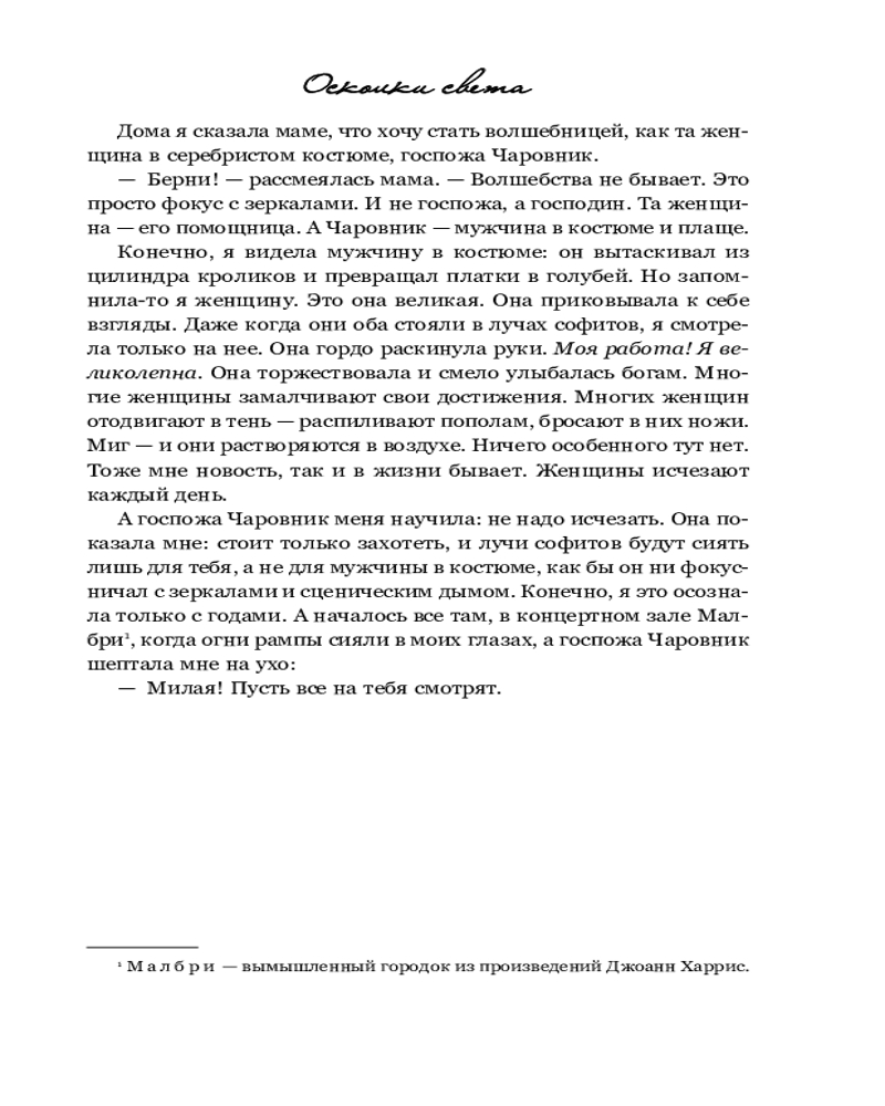 💳 Оплатить за товар можно при получении 🇰🇿 Есть бесплатная доставка по Казахстану от 1 дня 🎁 Копите бонусы с каждой покупки Серия: Novel. Авторская серия Джоанн Харрис Новинка от Джоан Харрис, автора четырех циклов книг, мастера в создании уникальной атмосферы и захватывающего сюжета с сочетанием мистики, фэнтези и реализма. Главная героиня решает изменить существующие стереотипы в обществе и доказать, что открыть в себе новые способности и стремления можно в любом возрасте, а также, что никогда не поздно начать жить для себя. Берни Мун чувствует себя невидимкой. Она отдала свою жизнь другим людям — мужу, сыну, матери, друзьям (хотя у нее никого из них не осталось). В 16 лет она была полна надежд и сил. Теперь, когда ей исполнилось 50, она угасает. Но когда в ее районе убивают молодую женщину, это пробуждает детские воспоминания о таланте, который у нее когда-то был. |