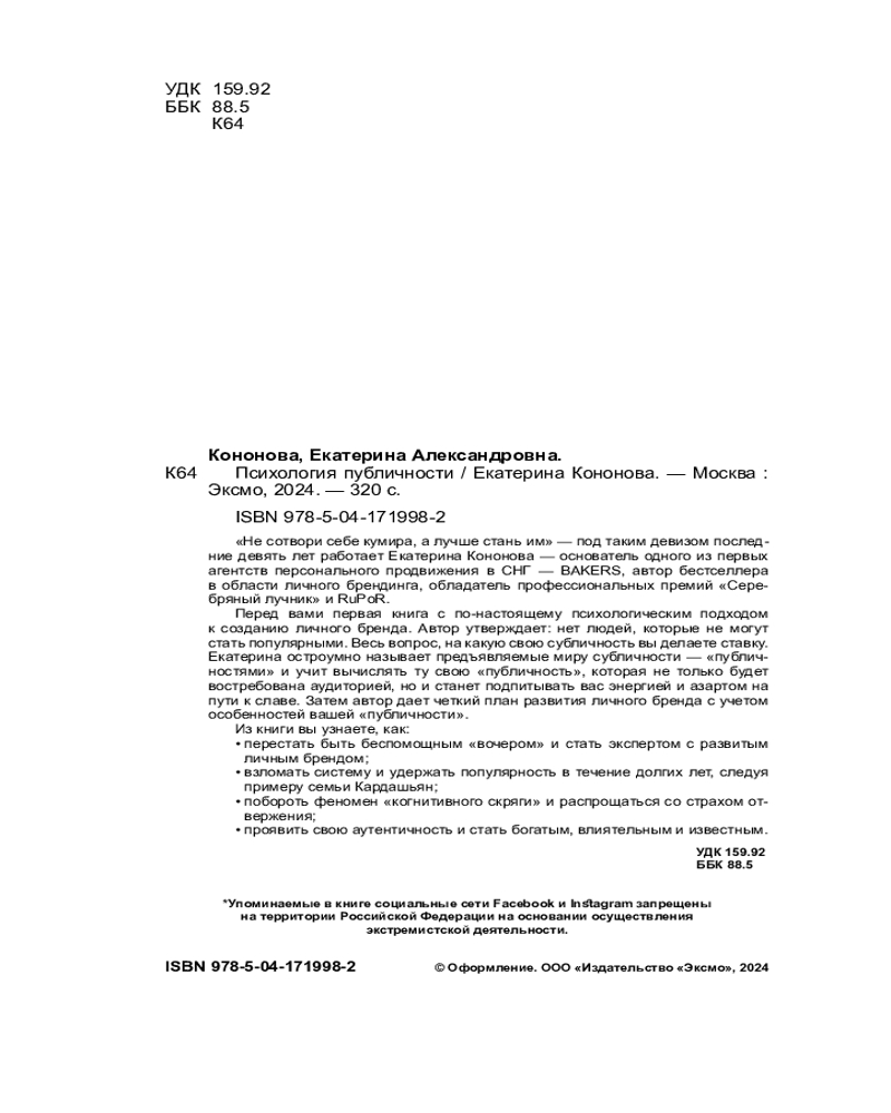 Психология публичности. Уникальная программа создания прибыльного личного брендаЕкатерина Александровна Кононова -30% +59