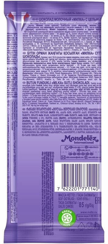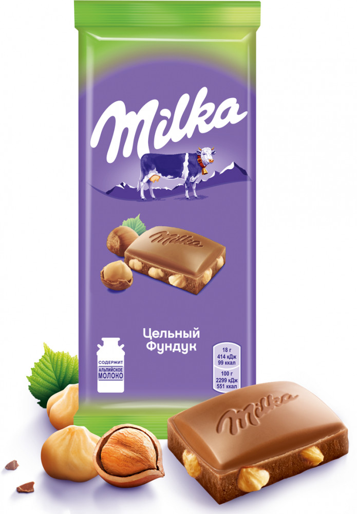 Milka Шоколад молочный с цельным фундуком
