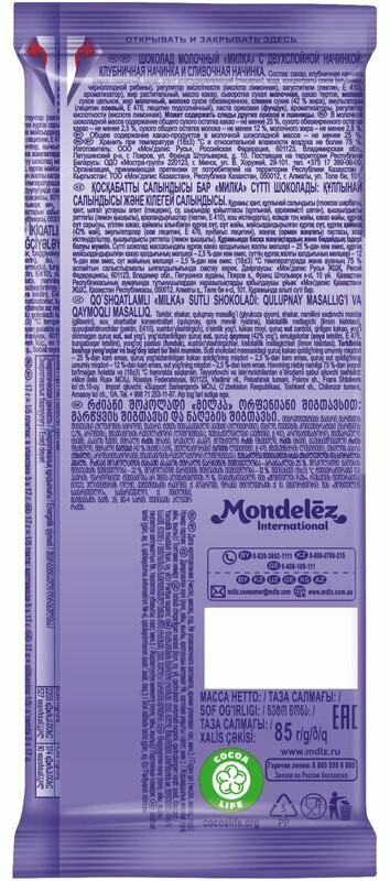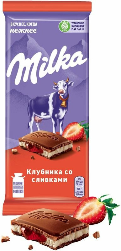 Milka Шоколад молочный с начинкой «Клубника со сливками»