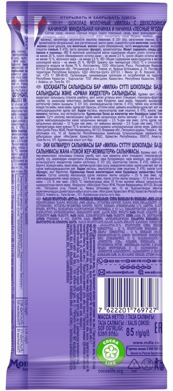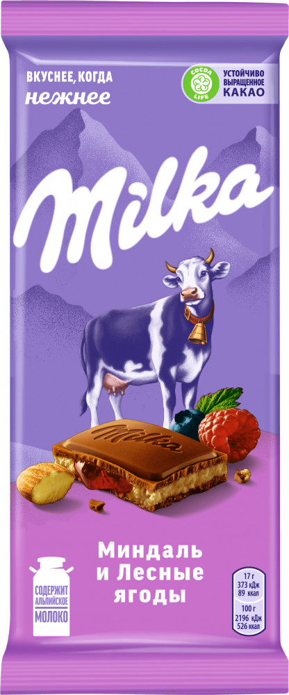 Milka Шоколад молочный «Миндаль и лесные ягоды»