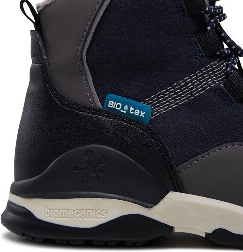 Демисезонные ботинки Biomecanics новой серии XTrem, производство Испания. Универсальные ботиночки, отличный вариант на повседневку и прогулку. Отлично в слякоть осенью и весной. Внешняя отделка — комбинация натуральных материалов с эффектом под кожу и текстильных вставок. Прослойка мембраны BioTex водонепроницаемая, но сохраняет тепло и обеспечивает термо-влагорегуляцию и внутренний комфортный микроклимат. Инновационный подклад BioLining с микроперфорацией, более прочный и экологичный. BioLining состоит из микроволокон, имитирующих ощущение натуральной кожи, не выцветает, сохраняет испарение и терморегулирующий эффект для сухих и здоровых ног! Съемная антибактериальная и антигрибковая стелька. Для каждого этапа роста ножки ребенка — различная колодка с учетом всех особенностей и нужд развития. Максимальная устойчивость и прочность колодки, плотный и комфортный обхват ножки для удобства при активных движениях. Специальные подушечки обеспечивают фиксацию пяточке.