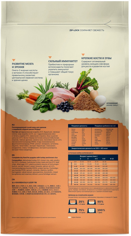 Avance Корм сухой для щенков с индейкой и бурым рисом