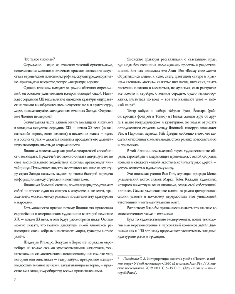 💳 Оплатить за товар можно при получении 🇰🇿 Есть бесплатная доставка по Казахстану от 1 дня 🎁 Копите бонусы с каждой покупки Серия: ARTS. Альбом Более двух веков Япония жила в изоляции от внешнего мира, и только в середине XIX века Страна восходящего cолнца была заново открыта для Запада. Началась новая эра в отношениях Японии и стран Европы, и не в последнюю очередь это касалось искусства. Во время Всемирных выставок в Лондоне и Париже павильон Японии, где были представлены гравюры и декоративно-прикладное искусство, произвел настоящую сенсацию. Во второй половине XIX века практически все художники-импрессионисты были очарованы простотой и изяществом японского стиля. Проникновение восточной эстетики в западное восприятие через искусство, прежде всего, изобразительное, изменило парадигму художественного мышления: видеть важное в повседневной жизни — в каплях дождя, облетевшей сакуре, заходящем солнце... |